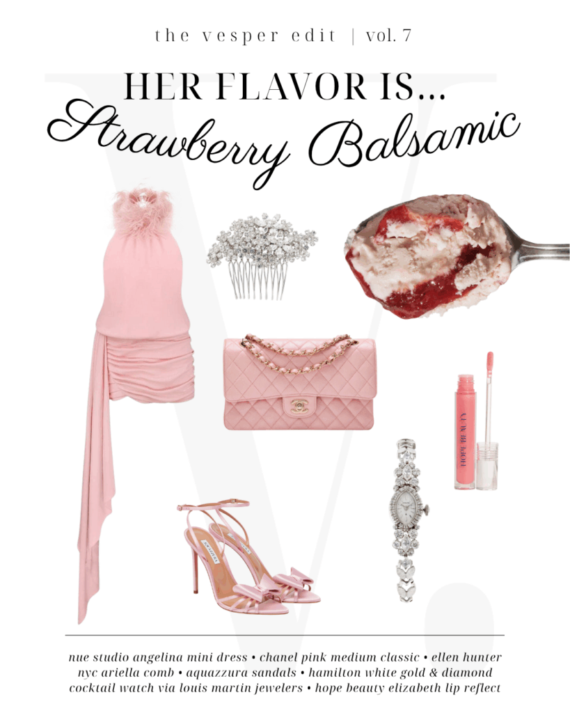 Love strawberry ice cream? You’ve never experienced it quite like this—swirled with jammy balsamic and sprinkled with black pepper it’s at once sweet and sassy…just like this outfit! It’s a trendy take on a classic scoop, so we had to curate an outfit that was just as cutting-edge. So cutting edge, in fact, that this confection of a mini dress from Nue Studio sold out minutes after we pegged it for this edit. If you luck out and snag one for yourself, would you be interested in sharing…?