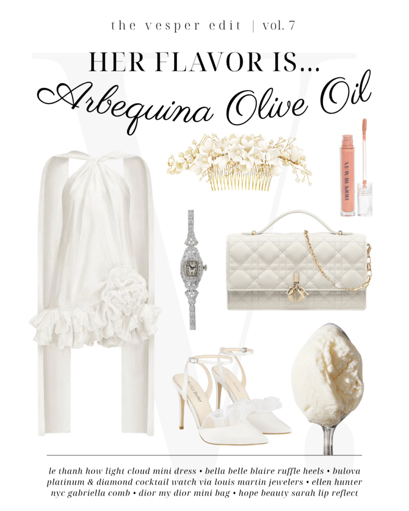 You may have tried drizzling olive oil over your vanilla ice cream (we’re personally big fans) but have you ever tried olive oil ice cream? If you haven’t, then make your way to a Salt & Straw shop, stat. Their Arbequina Olive Oil blend is light and bright and impossibly creamy—just like this outfit. Luxuriously draped with yards and yards of extra fabric, this ruffled halter from Le Thanh Hoa is a treat all on its own.